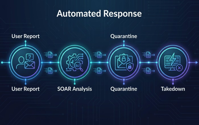 Automate message pulls, URL blocking, identity disablement , and domain takedowns. Correlate user reports with threat intel to drive enforcement actions across mail, identity, and endpoints. Integrate with your SAR Program workflow for suspicious activity that implicates funds movement, reinforcing Bank Secrecy Act requirements and organizational risk management.